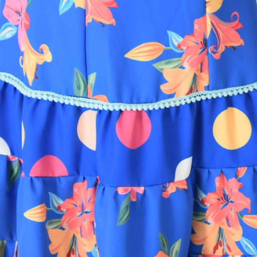 MT2071 3段小フリルワンピース<malvarosa> ブルー花柄・水玉<現品限り!>S-140 音【oto】