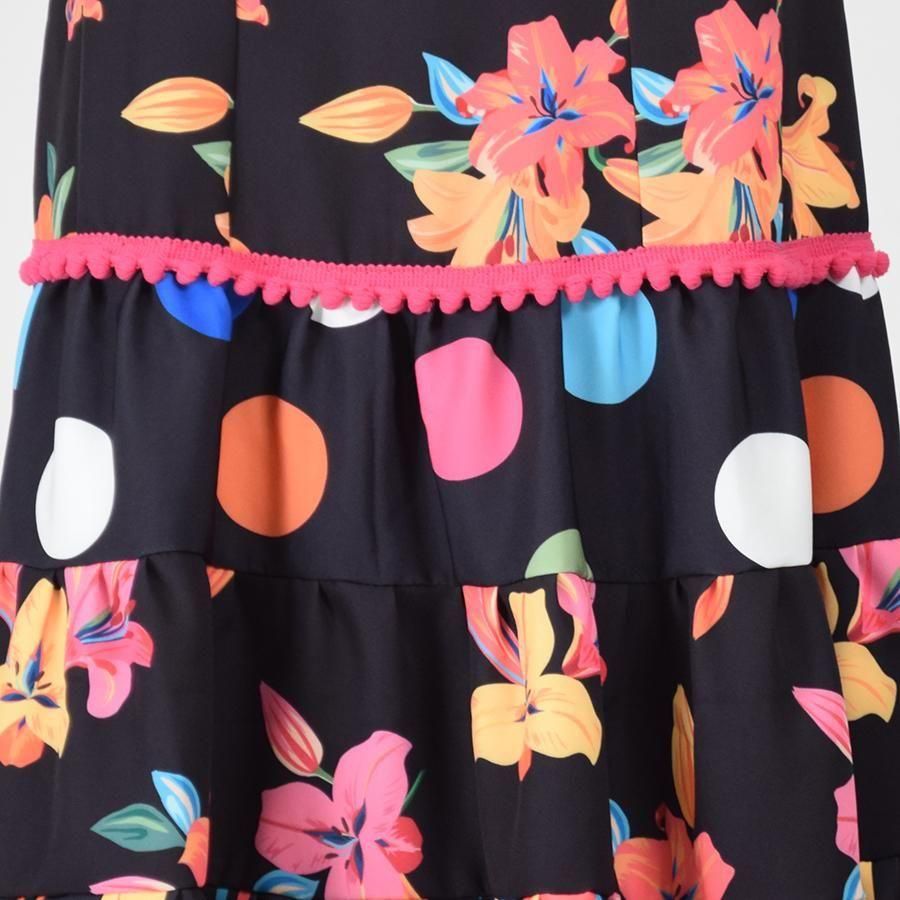 MF2011ティアードスカート<lantana >ブラック花柄・ストライプ<☆1点もの☆>L-100