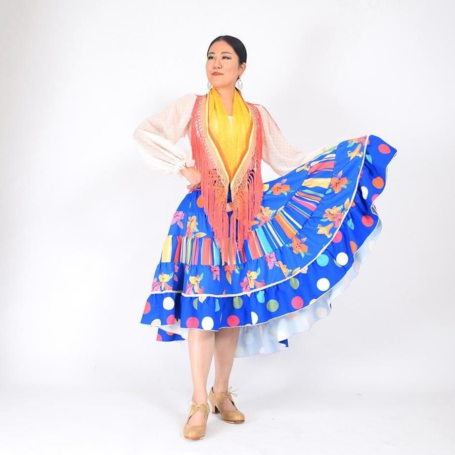 MF2011ティアードスカート<lantana >ブルー水玉・ストライプ<☆1点もの☆>L-95