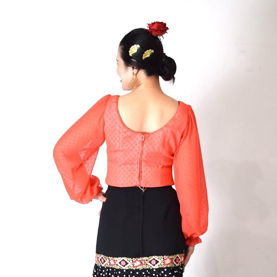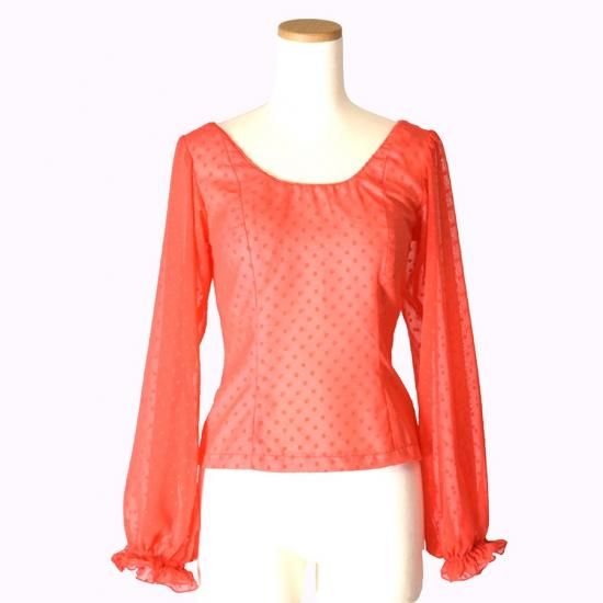 MB2012 ブラウス<manzano>コーラル水玉 M<現品限り!><1点のみにてクリックポスト配送>