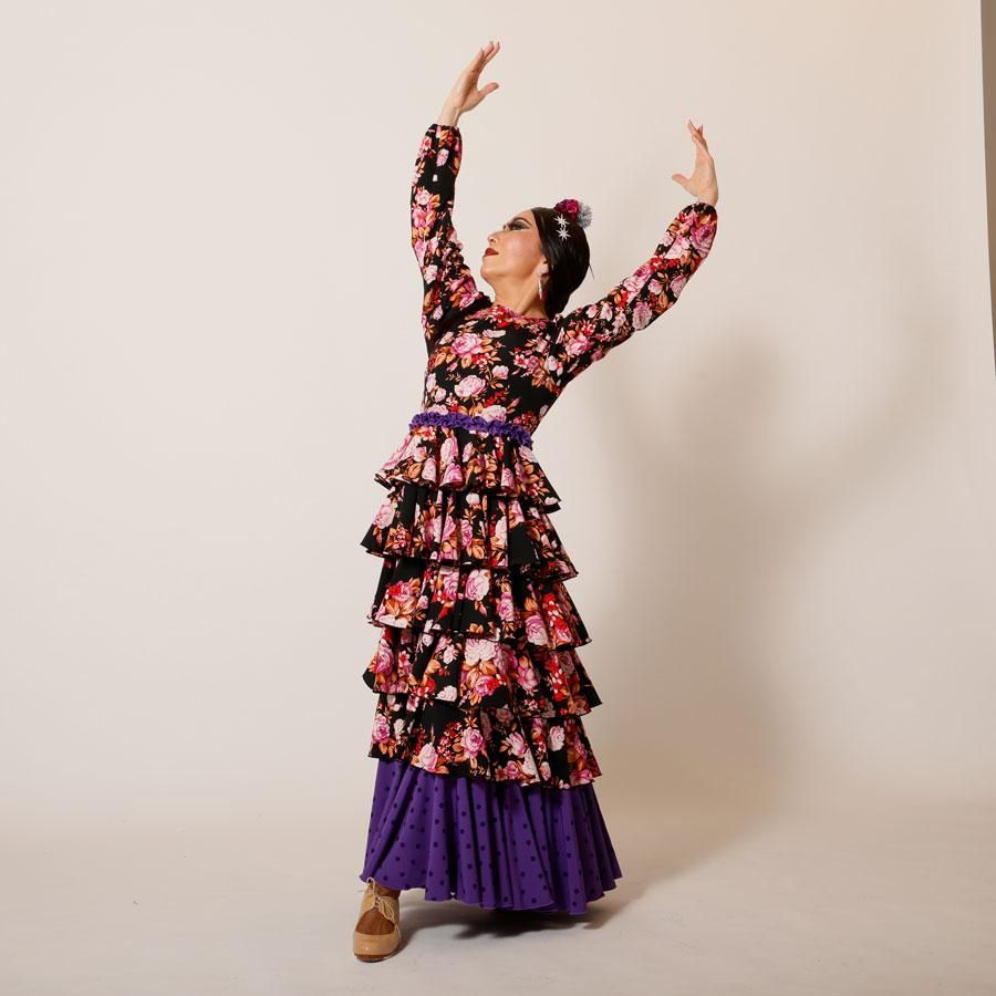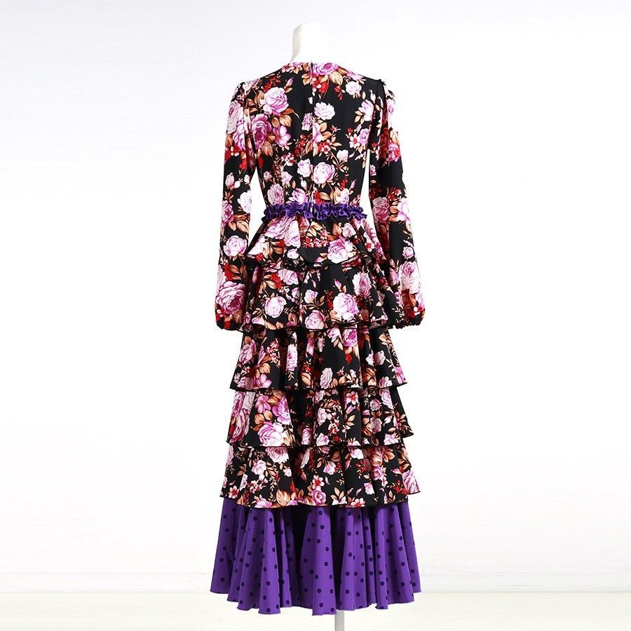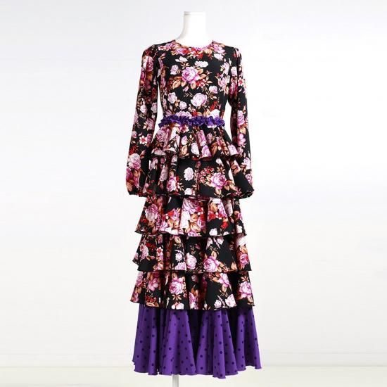 MT5061 ウエスト6段フリルワンピース<eustoma>ブラック・ピンク花柄 <☆オーダー☆可!>M-135 奏【kanade】