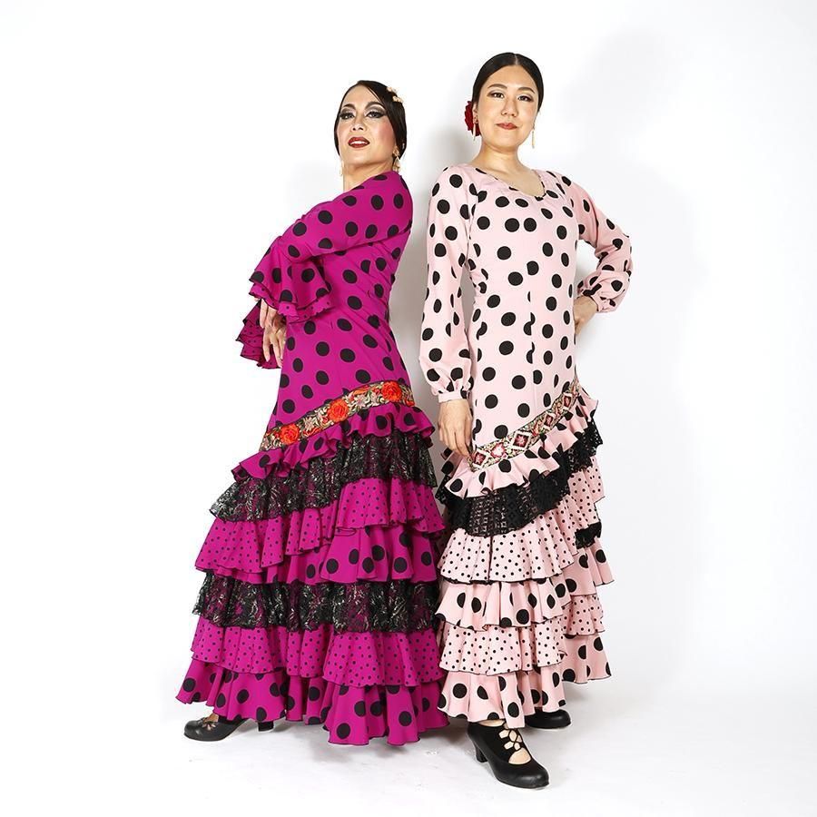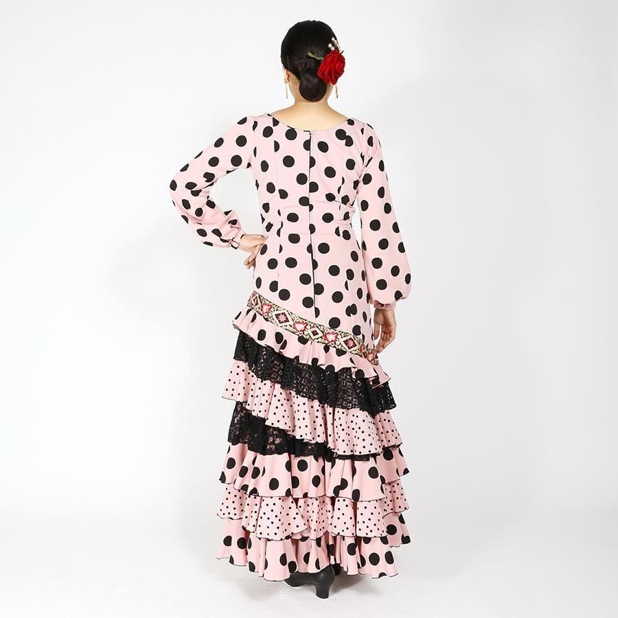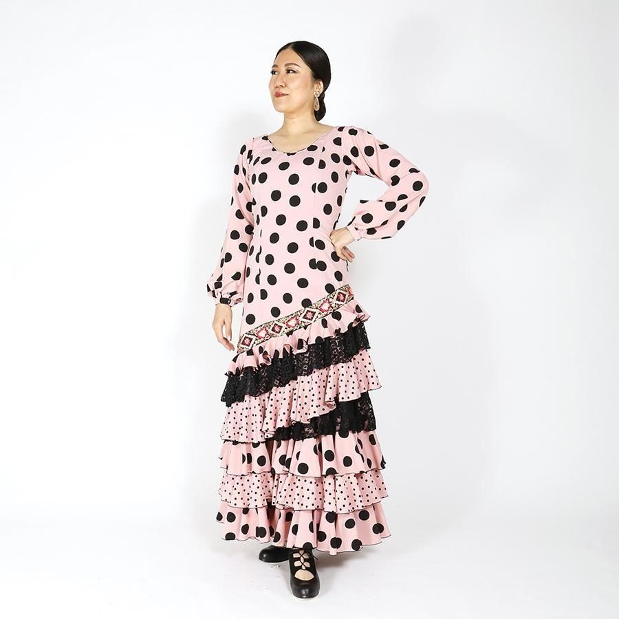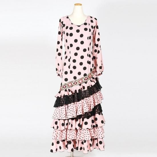 MT3031 7段斜めフリルワンピース<margarita>ライトピンク・ブラック水玉<☆1点もの☆>L-140