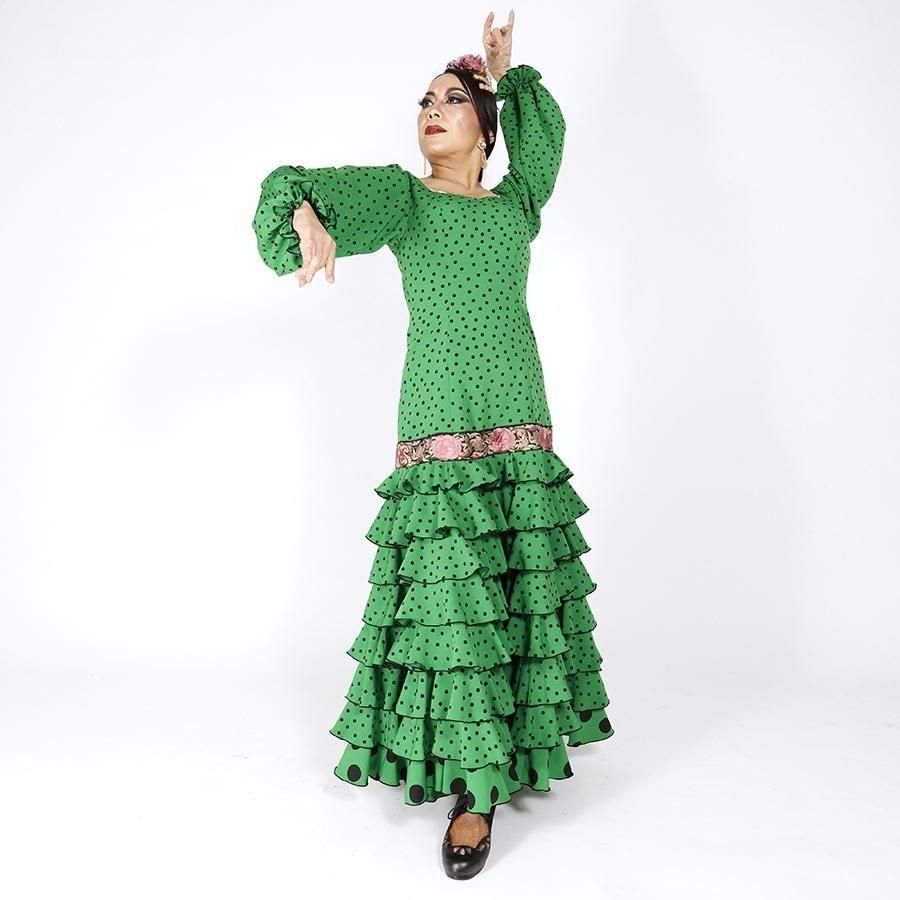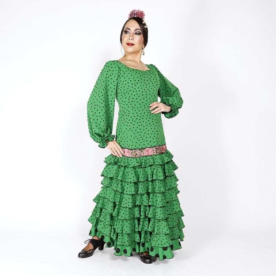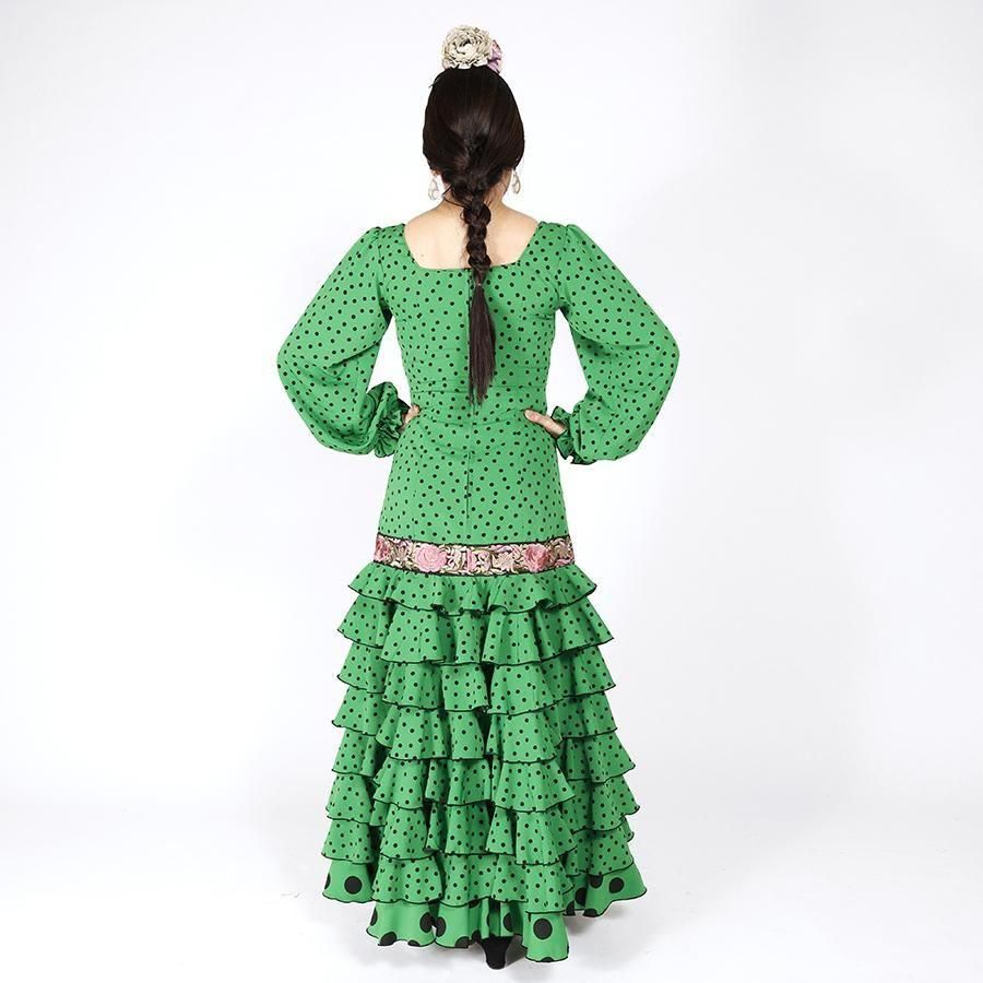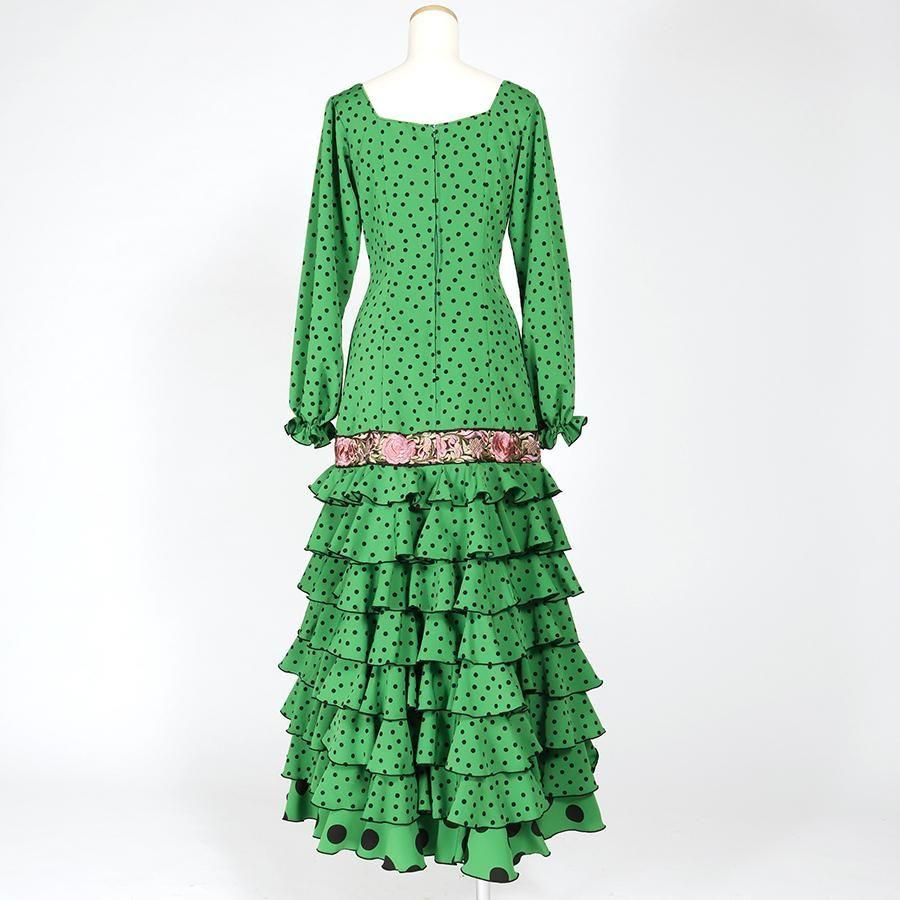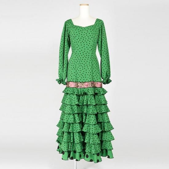 MT2051 8段フリルワンピースグリーン・ブラック水玉