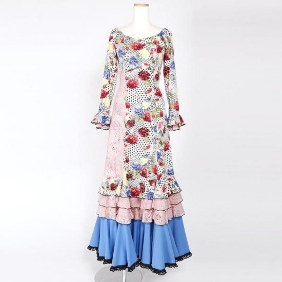 MS5057 ダイヤカット・3段小フリルスカート2P ホワイト花柄・水玉  M-100 <☆1点もの☆>