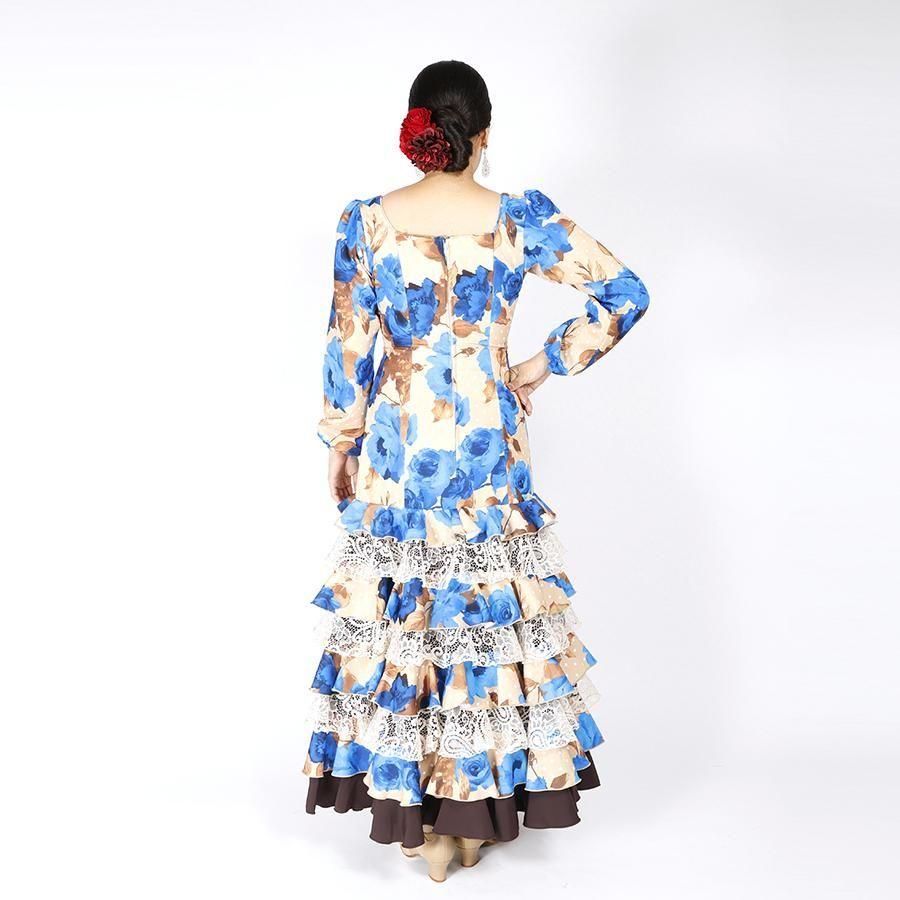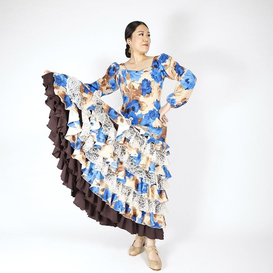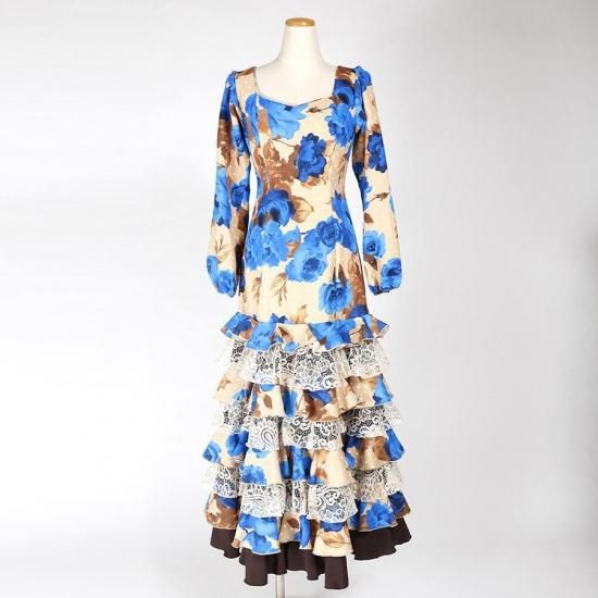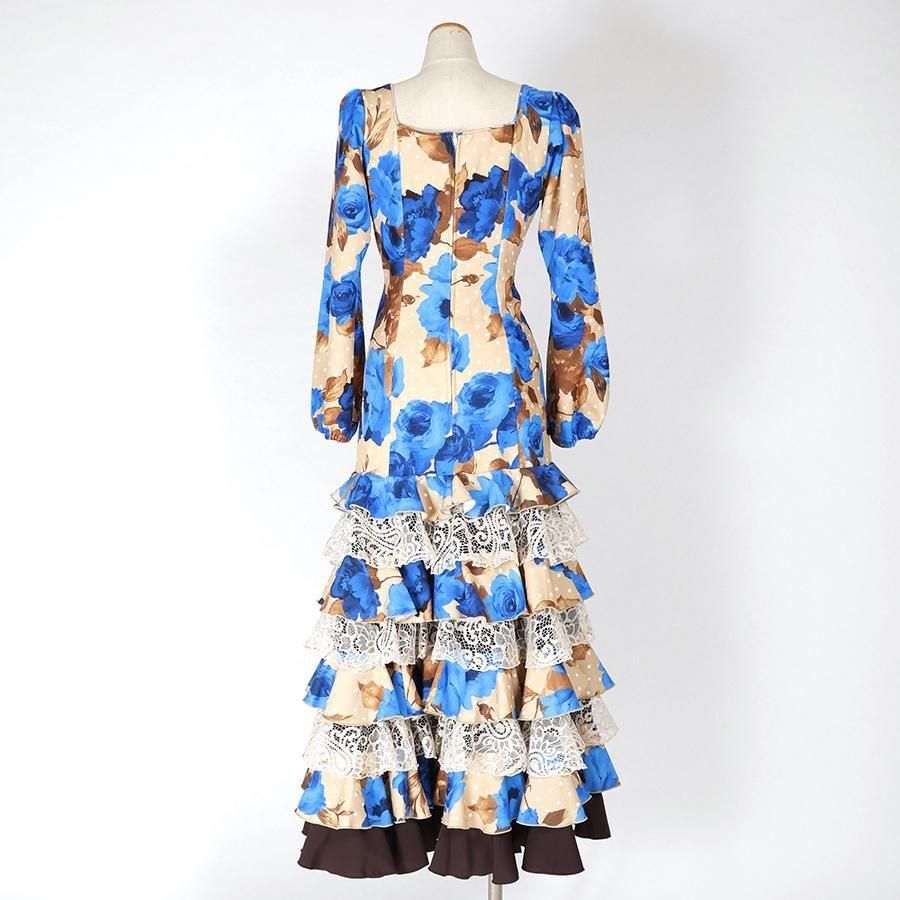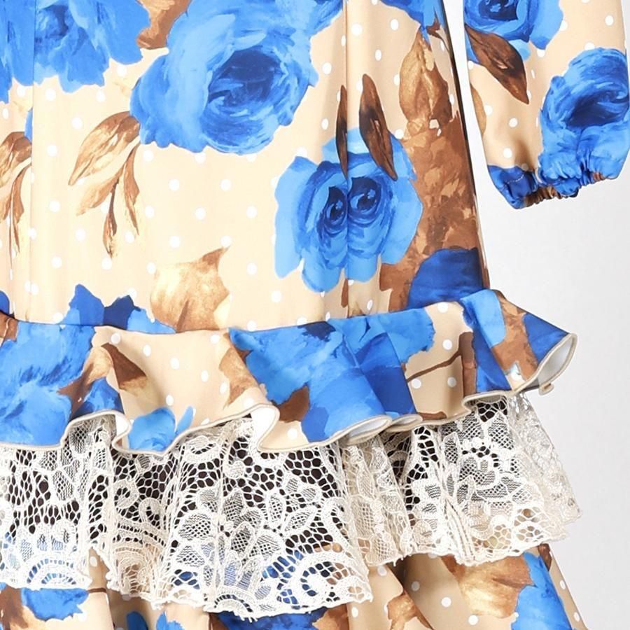MT5011 8段フリルワンピース<geranio>ベージュ・ブルー花柄<☆1点もの☆> L-140