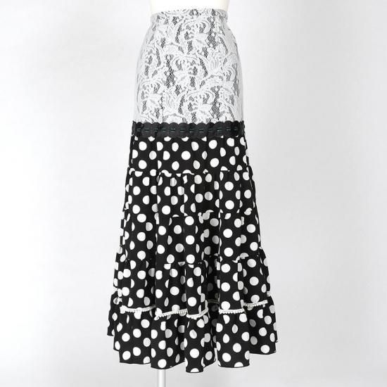 MF2011ティアードスカート<lantana >ブラック・ホワイトレース/水玉<☆1点もの☆>2L-95
