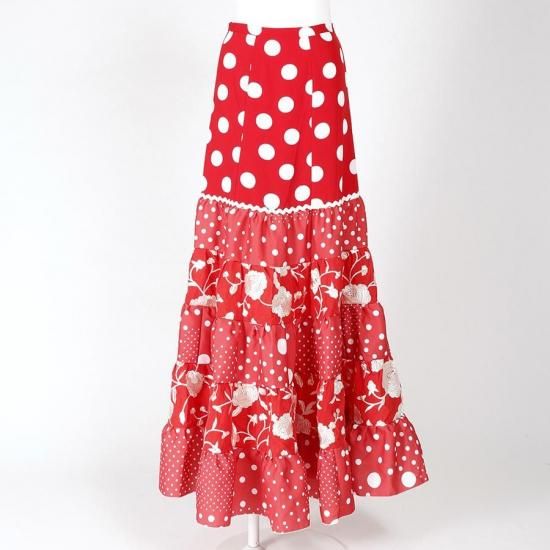 MF2011ティアードスカート<lantana >レッド・アイボリー刺繍<☆1点もの☆>M-100