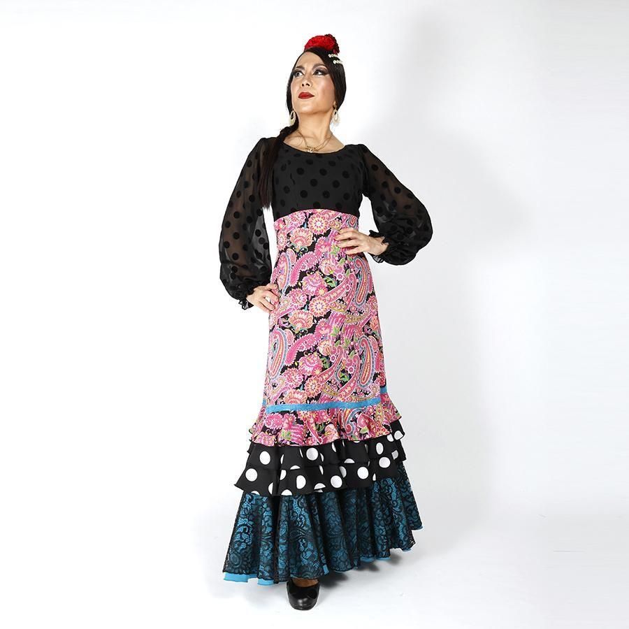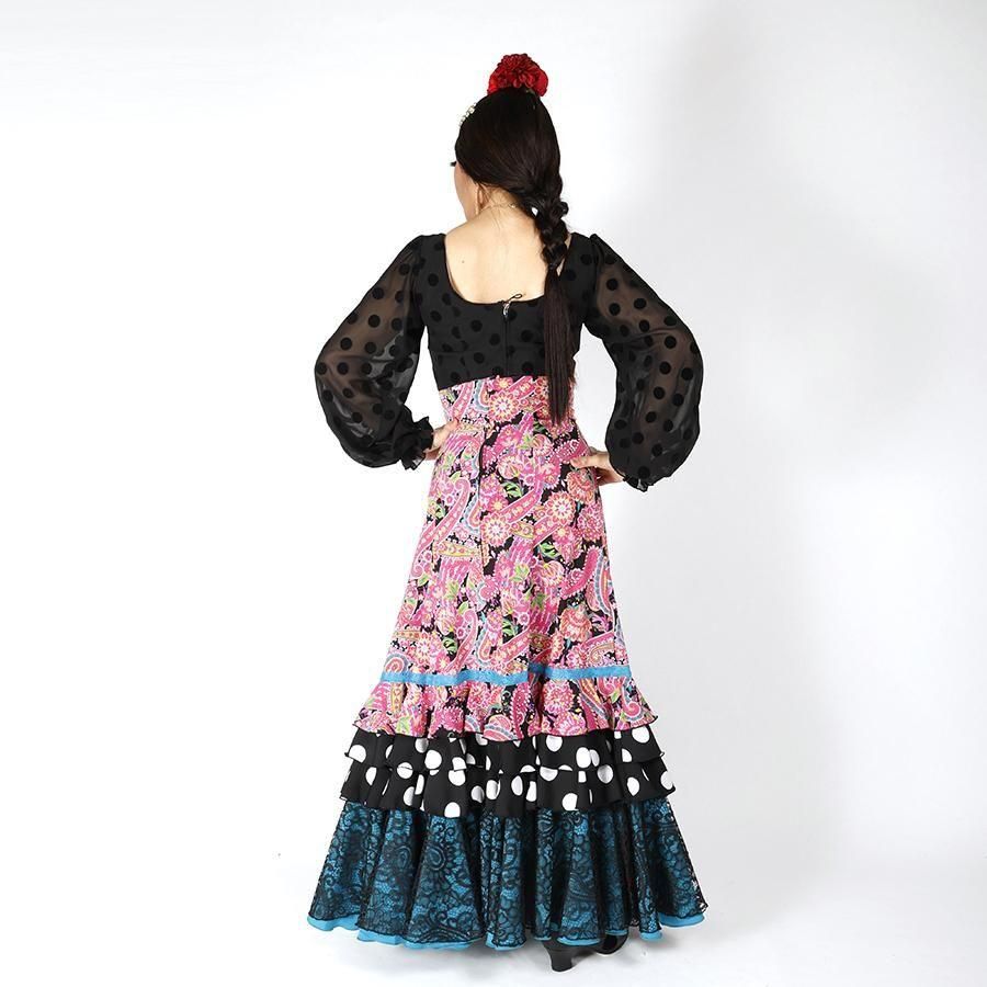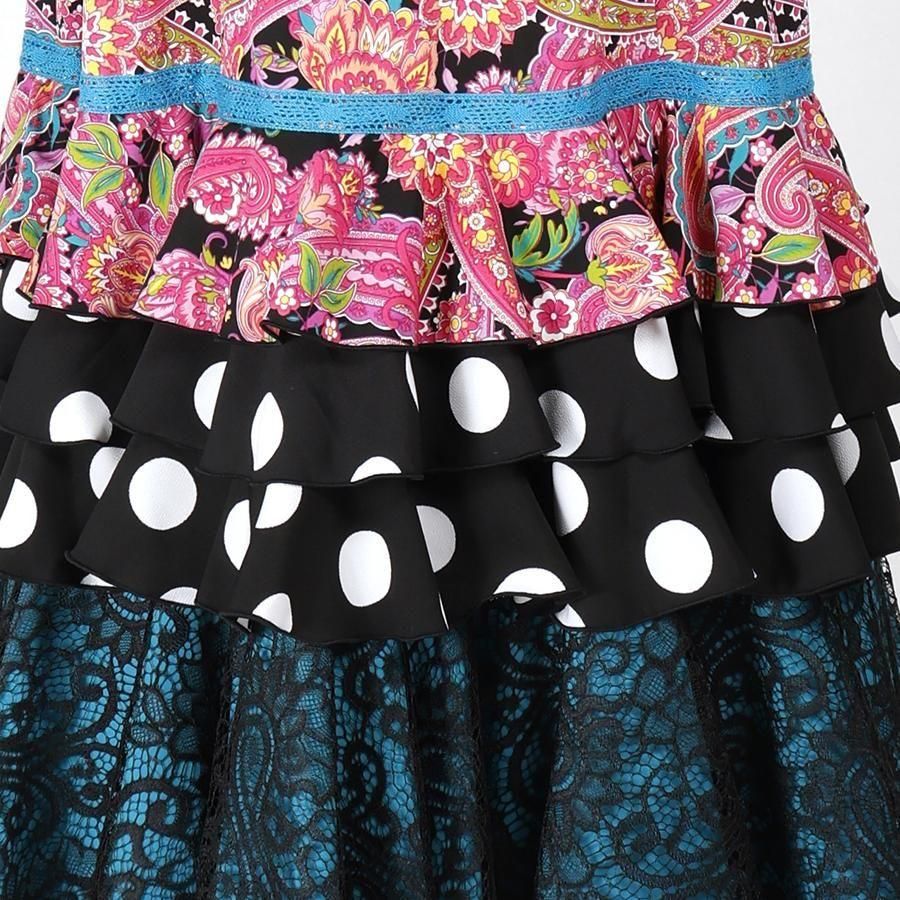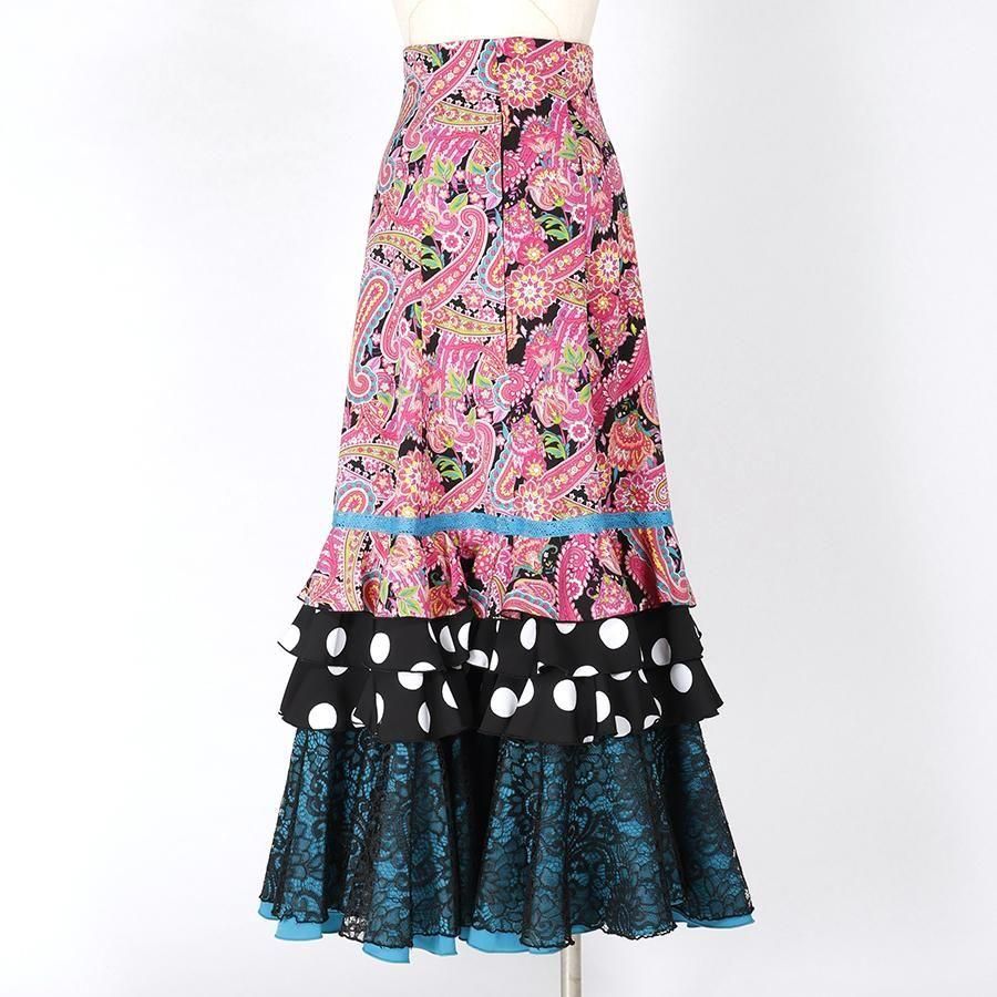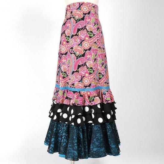 MF5021 サイドパネル切替/3段小フリルスカート<hisopo>ブラック・ピンク系ペイズリー<☆オーダー☆可!> L-95 星【hoshi