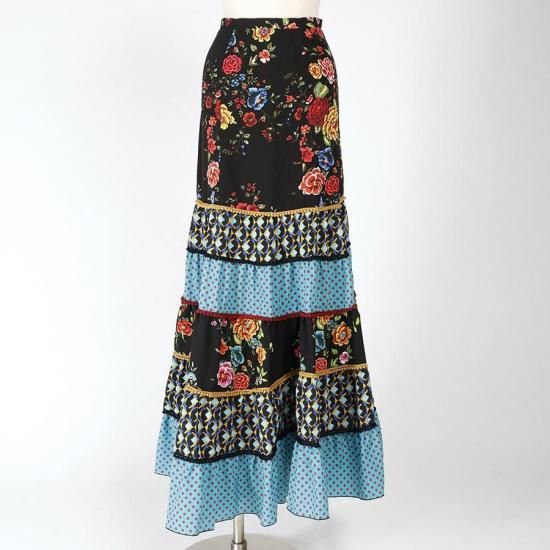 MF2011ティアードスカート<lantana >ブラック花柄・ピーコック水玉<☆1点もの☆>2L-100