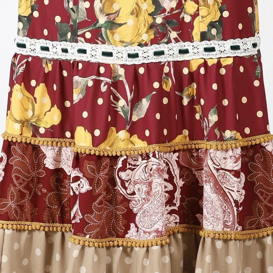 MF2011ティアードスカート<lantana >ワイン花柄<☆1点もの☆>M-100
