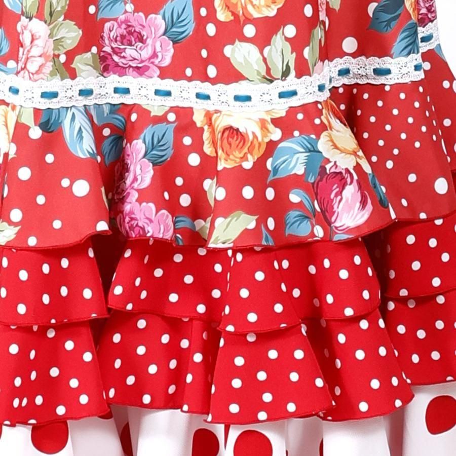 MS5057 ダイヤカット・3段小フリルスカート2P レッド水玉 M-100 <☆1点もの☆>