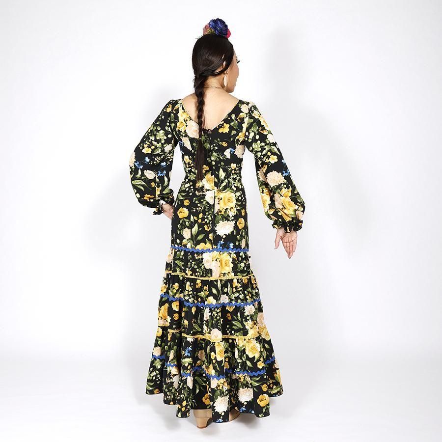 MT2041 ティアードワンピース<ipomea> ブラック・イエロー花柄<☆1点もの☆>M-140