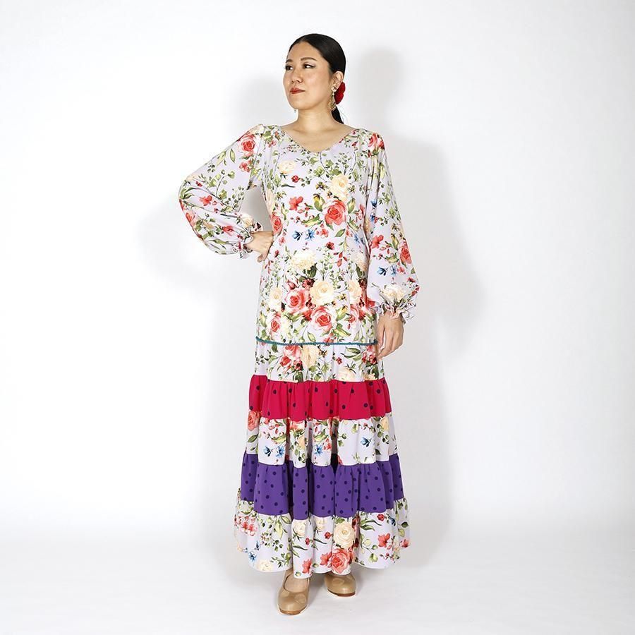 MT2041 ティアードワンピース<ipomea> ライラック花柄<☆1点もの☆>2L-140