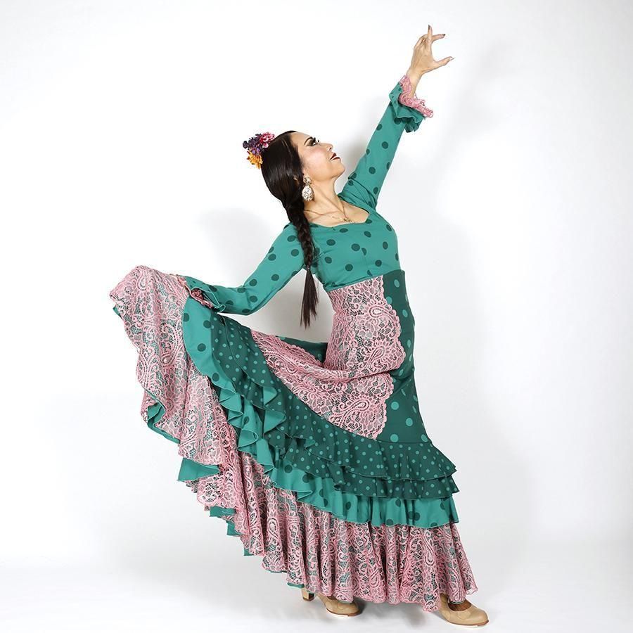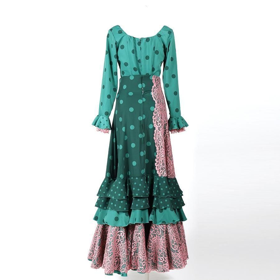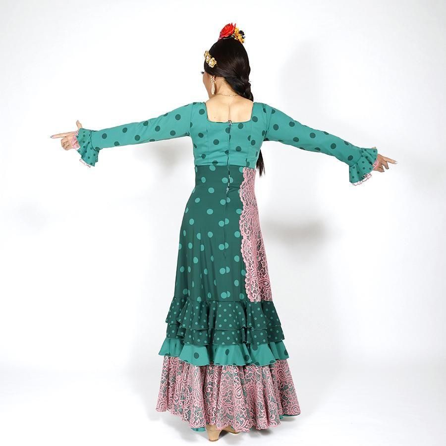 MS5057 ダイヤカット・3段小フリルスカート2P グリーン水玉 M-95 <☆1点もの☆>