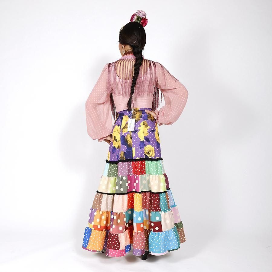 MF2011ティアードスカート<lantana >パープル花柄・ライトブルー☆1点もの☆>S-95